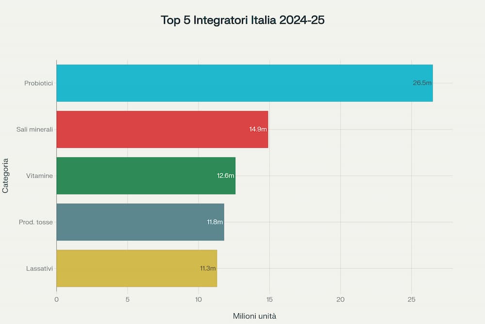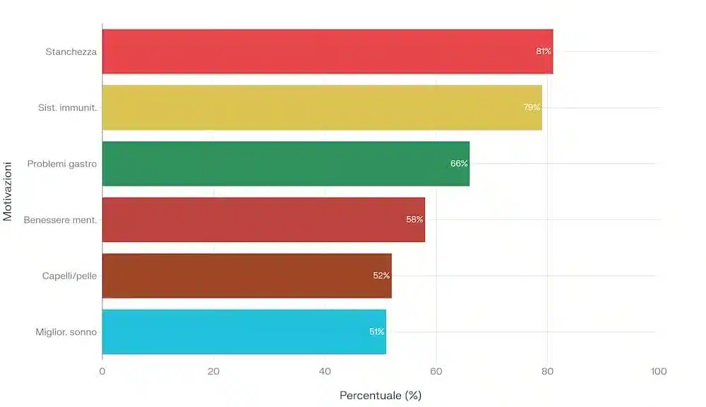 - Differenze: donne preferiscono integratori per digestione, pelle e capelli; uomini per prostata e funzionalità urinaria