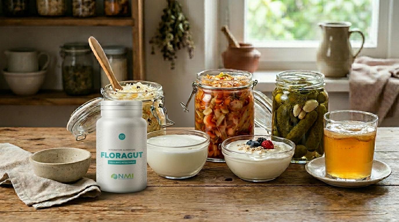 Gli alimenti fermentati rappresentano la fonte più antica di probiotici naturali. Kefir, yogurt tradizionale, crauti, kimchi e miso contengono comunità microbiche complesse sviluppate attraverso processi fermentativi spontanei o controllati.